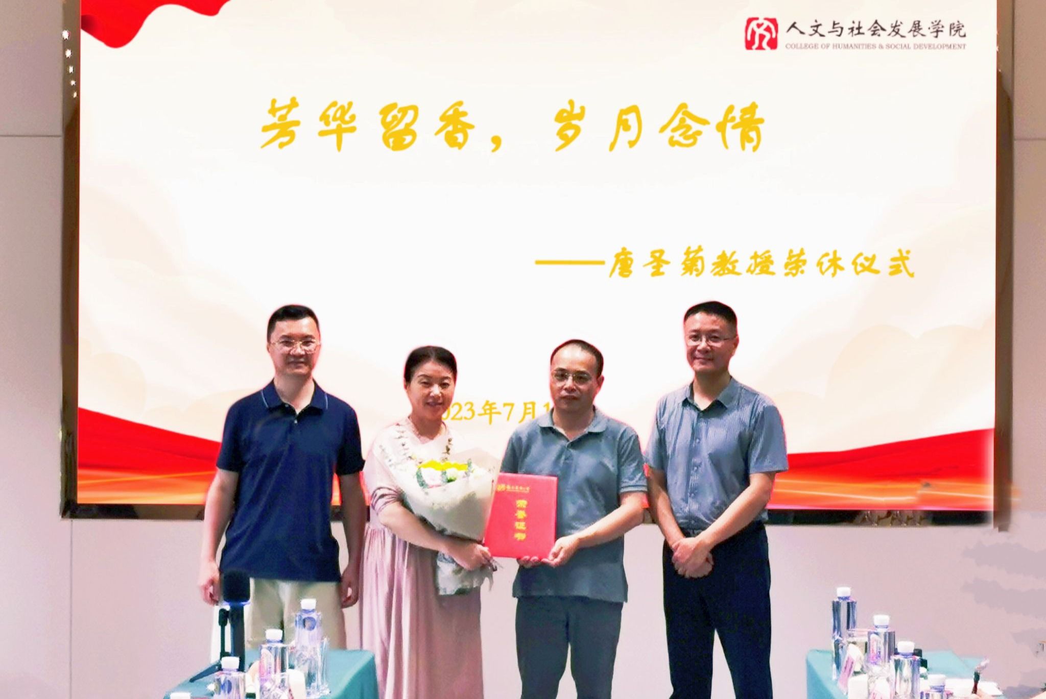会议恰逢艺术系唐圣菊教授退休之际,同时举办了唐圣菊老师的荣休仪式。仪式现场,温情洋溢,李日葵和卢勇代表成人短视频