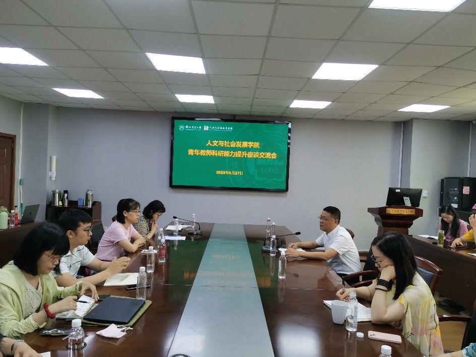 在逸夫楼6041召开青年教师科研能力提升交流座谈会。卢勇院长、戚晓明副院长和成人短视频