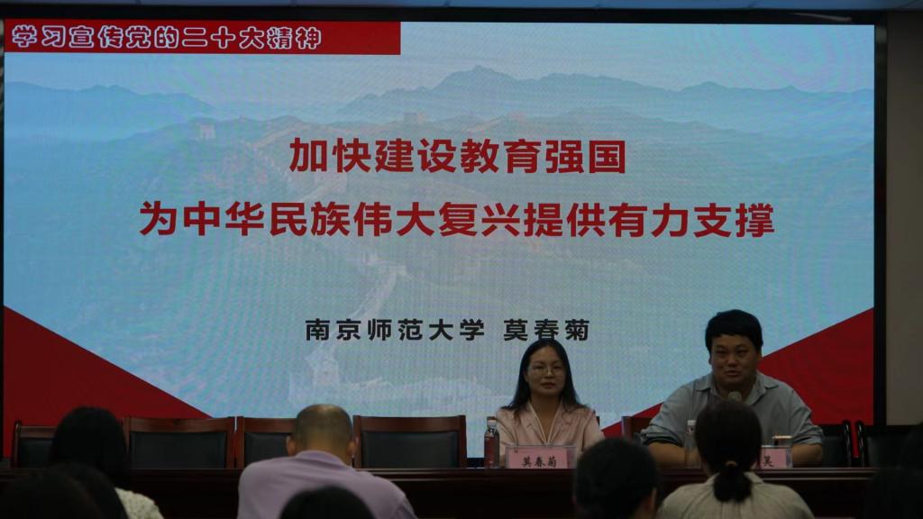 副书记兼副院长莫春菊副教授,以“加快建设教育强国,为中华民族伟大复兴提供有力支撑”为主题,带领大家学习宣传党的二十大精神。