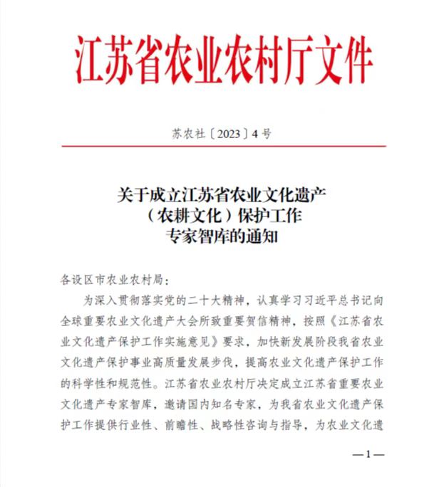 近日,江苏省农业农村厅苏农社[2023]4号文件发布了《关于成立江苏省农业文化遗产(农耕文化)保护工作专家智库的通知》,成人短视频