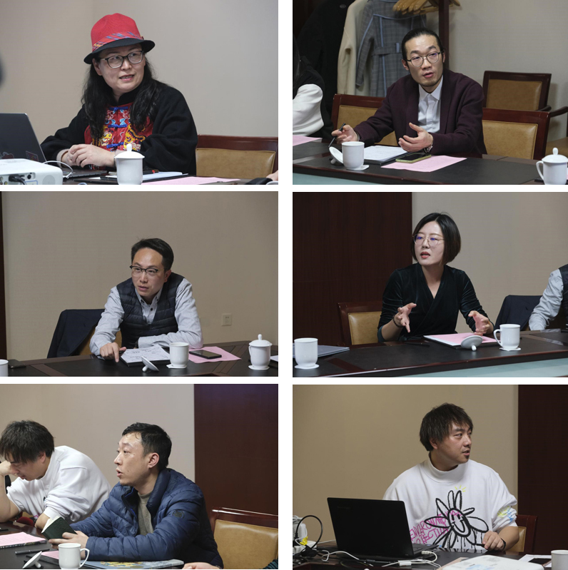 学工办副主任王誉茜、保利文化集团博物馆IP事业部负责人&设计总监李家恩、绘本画家贵图子、南京玉戈文化传播有限公司创始人沈宝成、南京木马谣文化创始人孙亚明以及南京七影堂文化传媒有限公司创始人王春龙。会议围绕“2022年成人短视频