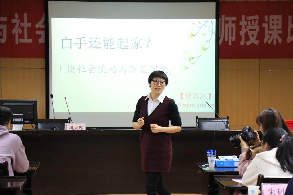 的7个系。授课内容涉及广告学、大学语文、SPSS软件应用、旅游概念的古今差异、速裁程序、旅游研究方法、农业起源、农村社会学、旅游目的地营销、管理学原理、生态农业、蒙古族舞蹈、演员职业精神、美洲作物史话、三弦和七弦、社会流动与阶层固化、中国戏曲艺术、民俗文化等等。比赛过程中,大家结合各自的专业特点,运用丰富的教学手段和方法,八仙过海,各显神通,充分展现了自我风采,不时赢得现场师生的阵阵掌声。一些精彩的授课,还引得现场观摩的老师频频举起手机录制视频。