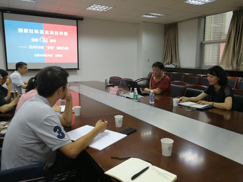 院长、江苏镇江法治政府研究院院长、镇江市委市政府法律顾问。曾主持国家社科基金项目3项、省部级项目3项(重点1项),也曾担任多项社科基金的评审委员,在社科基金的申报及评审条件的掌握上具有丰富的经验。刘教授以2018年涉农项目为例,作了“国家社科基金项目申报的分析与思考”的报告,报告从国家社科基金的立项情况入手,分析了涉农选题在中标选题中的比例,涉农立项的重点领域、选题特色、立项导向,指出分析指南选题的重要性和跨学科涉农选题的意义。接着刘教授以自己2018年申报的课题为例,详细地为老师们介绍了课题申请书各部分的目的和意义、写作技巧和注意事项,其间回答了老师们提出的各种问题,宾主进行了愉快的交流。刘教授的讲授深入细致、信息量大,详尽解析了申报书撰写过程中的各个难点和重点问题,参与本次交流的老师们纷纷表示受益匪浅。