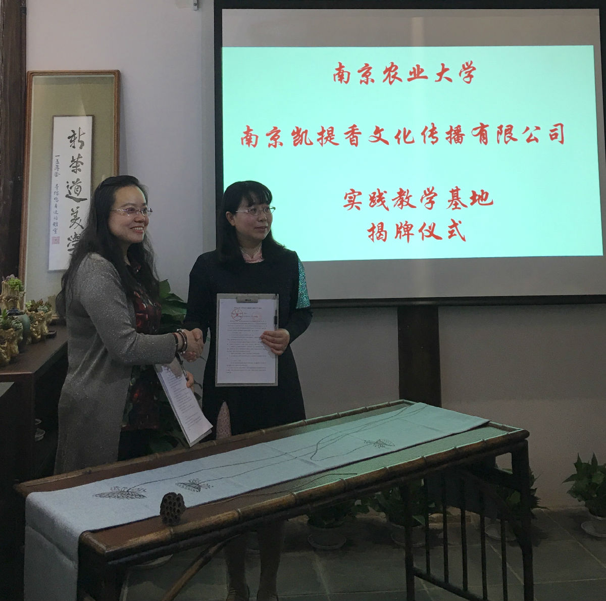 茶学系系主任陈暄副教授,与南京凯提香文化传播公司陈明华董事长、孙冬明总经理、江苏省文化艺术研究院彭毅主任、南京市非物质文化遗产保护中心万宝宁主任共同出席了仪式。