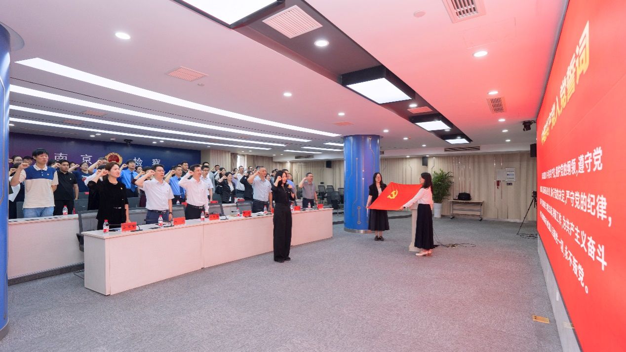 最后全体党员面对鲜红的党旗,重温入党誓词。全体党员高举右拳,宣誓声铿锵有力,一字一句,神圣而庄重,表达着对党的事业奋斗终身的决心,表达着不忘光辉历程,始终坚定跟党走的信心和决心。