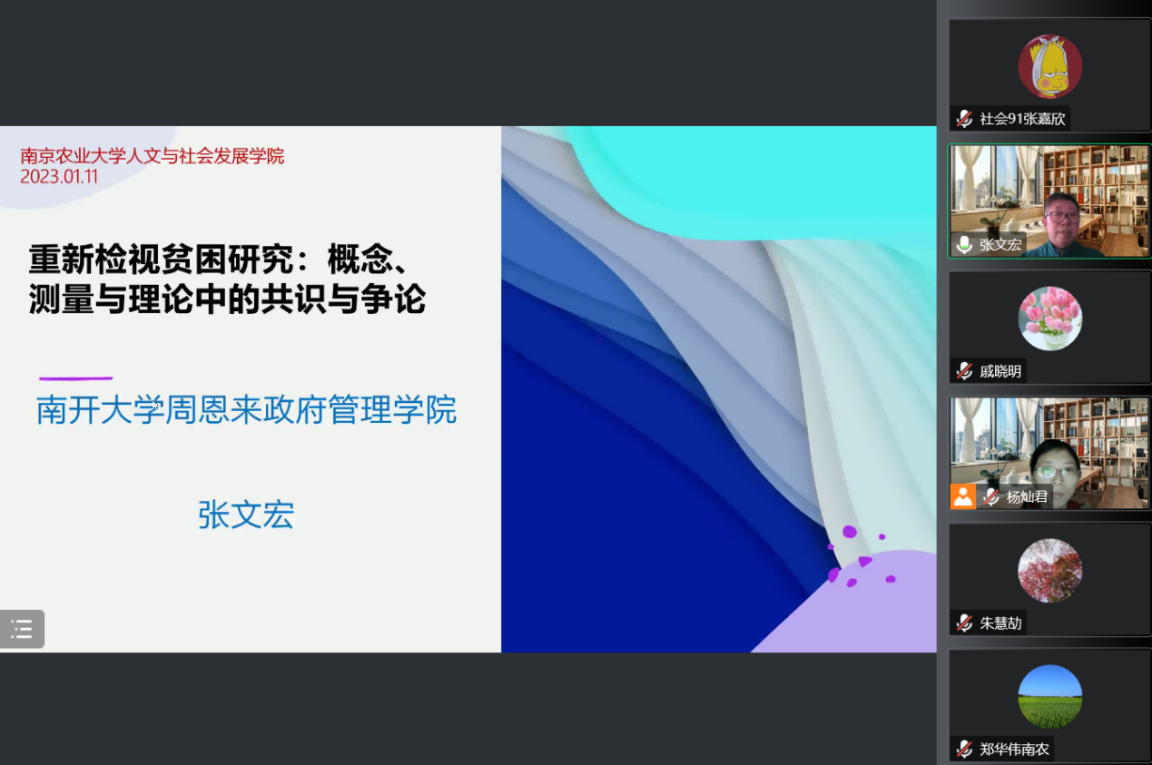 社会学讲坛在腾讯会议举办。南开大学张文宏教授应邀作了题为“重新检视贫困研究:概念、测量与理论中的共识与争论”的学术讲座。本次讲座由成人短视频