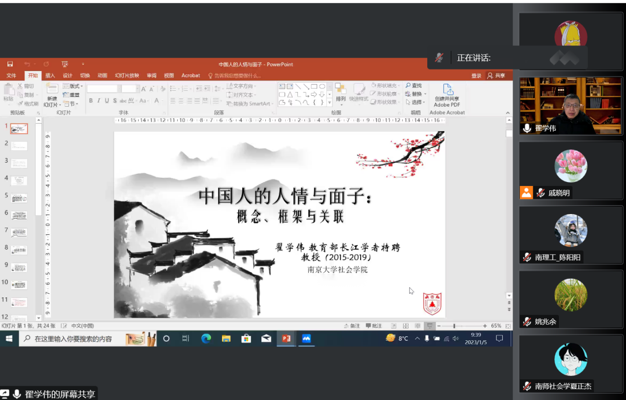 社会学讲坛在腾讯会议举办。南京大学翟学伟教授应邀作了题为“中国人的人情与面子:框架、概念与关联”的学术讲座。本次讲座由成人短视频