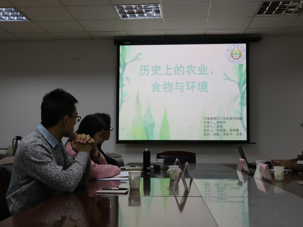 讲师李昕升介绍了本次活动的概况。李老师指出本次万国鼎青年工作坊遵循“不年轻的不邀请、不优秀的不邀请、不与农业相关的不邀请”的“三不”原则,旨在为青年学者搭建一个学术探讨的平台。此外,李老师表示以往的农业研究重视农业技术,然而农业是食物的载体、食物是农业的结果,两者都与环境有关,因此对农业、食物与环境三者关系的研究是十分有必要的。随后,李恒俊、邵俊敏、涂丹、刘亮、李昕升、吴昊等六位讲师分别为大家作学术报告。
