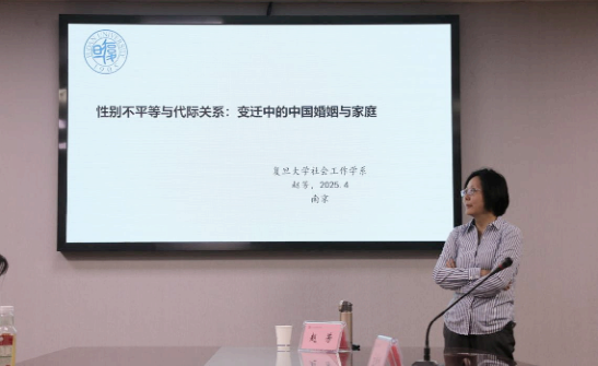 社会工作学系主任赵芳教授受邀担任主讲人,以“性别不平等与代际关系:变迁中的中国婚姻与家庭”为题展开深度剖析。讲座由戚晓明副院长主持,现场讨论热烈,学术思辨氛围浓厚。