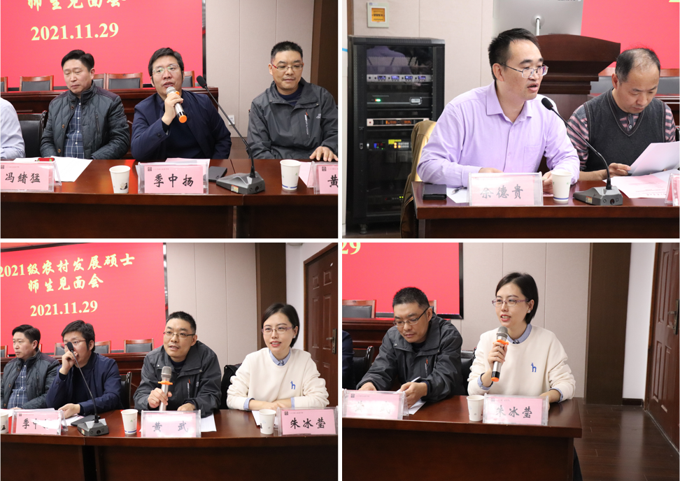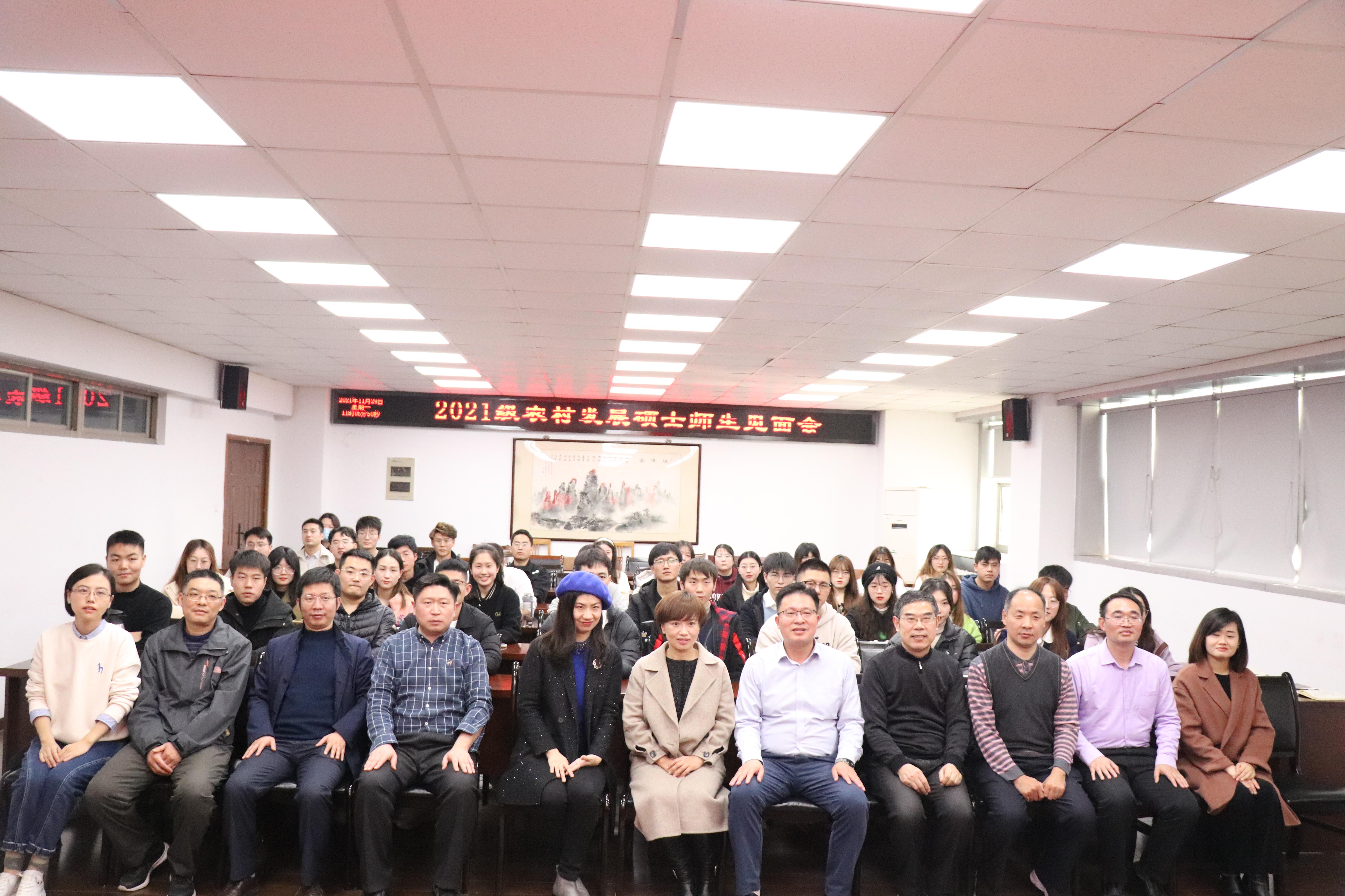 研究生秘书肖阳老师,学科点秘书尤兰芳老师。2021级全体农业硕士参加了见面会。会议由农村发展系主任余德贵副教授主持。