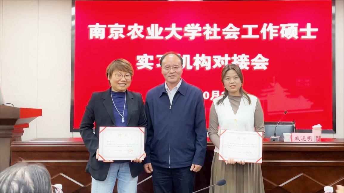 随后,姚兆余教授向新签约的南京乐众社会工作服务中心、南京心苑社会工作服务中心两家机构颁发校外兼职指导教师聘书和机构督导聘书。