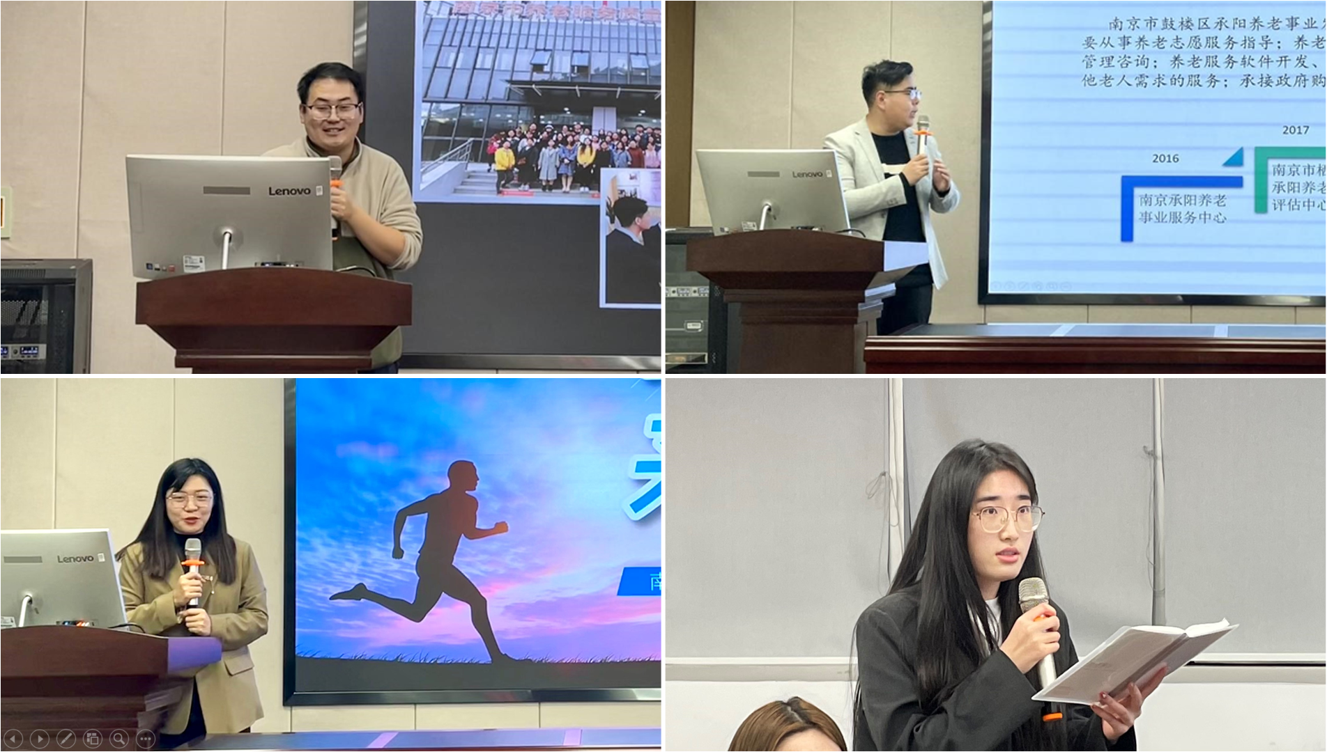 接下来,11家机构负责人或代表分别介绍了机构概况和目前开展的服务项目,并对研究生实习工作提出了期望和要求。其中,江苏省民政厅机关党委专职副书记、江苏省养老服务指导中心主任孙燕表示江苏省老年公寓作为省级养老服务平台,长期为高知、高干、高收入退休老年人提供高质量服务,在为南农学生提供专业指导的同时,也向南农学生的专业能力提出了要求。机构介绍完后,2021级社会工作研究生积极提问,与机构进行充分交流。