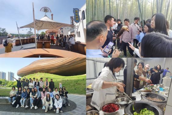 4月18日,践行20多天前金坛茅山度假区管委会杨国忠副主任和俞璐副局长的邀约,实地考察金坛茅山度假区。杨主任亲自介绍度假区管委会展厅内容,并引导同学们与“茅茅”IP开展互动交流。在茅山森林世界,同学们考察该地的亲子游市场、山野美宿、森系游乐、森养度假和网红打卡产品。在溧阳,沿着美音公路考察了葫芦村乐活世界(乡村振兴嘉年华),在溧阳博物馆系统了解溧阳的历史和文化,并前往由四位斜杠青年旧屋翻新的瓦尔登书局一探究竟。傍晚抵达成人短视频 实践教学基地溧阳天淼山庄,参加挖笋和农家灶劳动教育活动,在篝火晚会中促进班级凝聚力的提升。