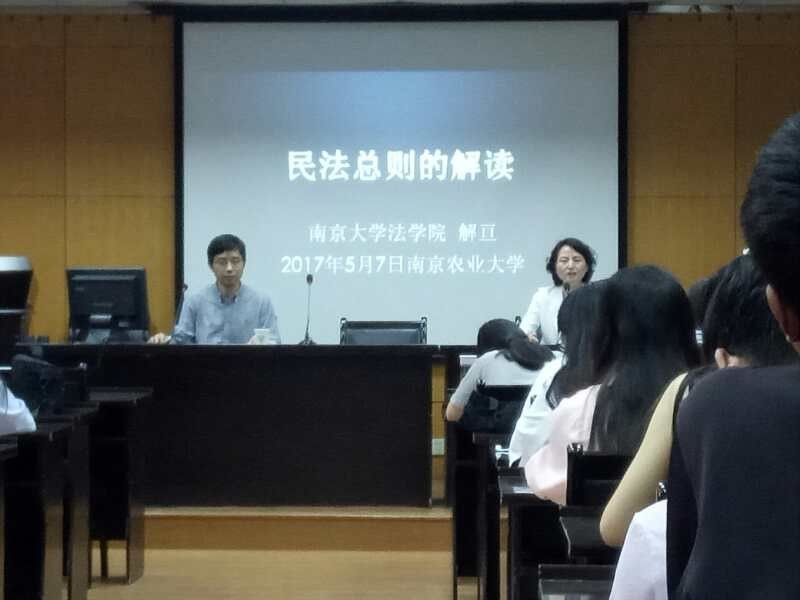 2017年5月7日上午,南京大学法成人短视频 教授解亘教授莅临成人短视频 ,为法律系师生带来“民法总则的解读”。