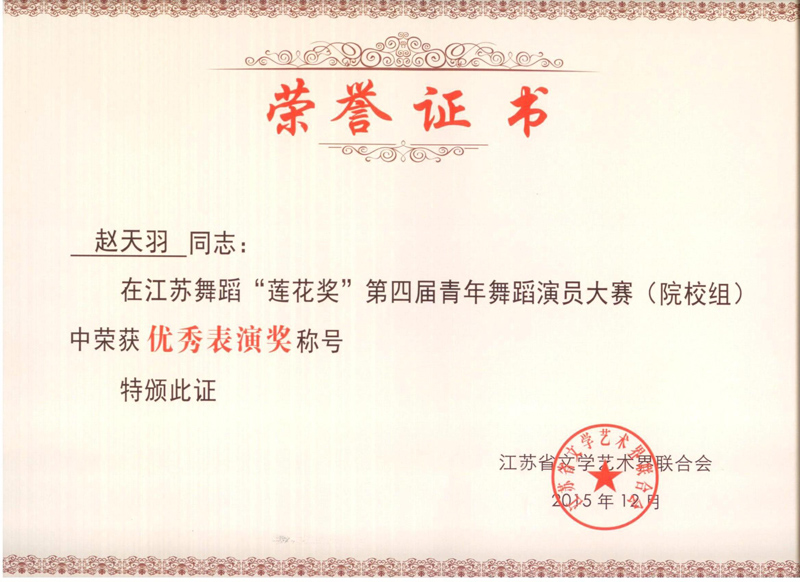 祝贺成人短视频 艺术系舞蹈《一滴水》获得江苏舞蹈莲花杯“优秀表演奖”